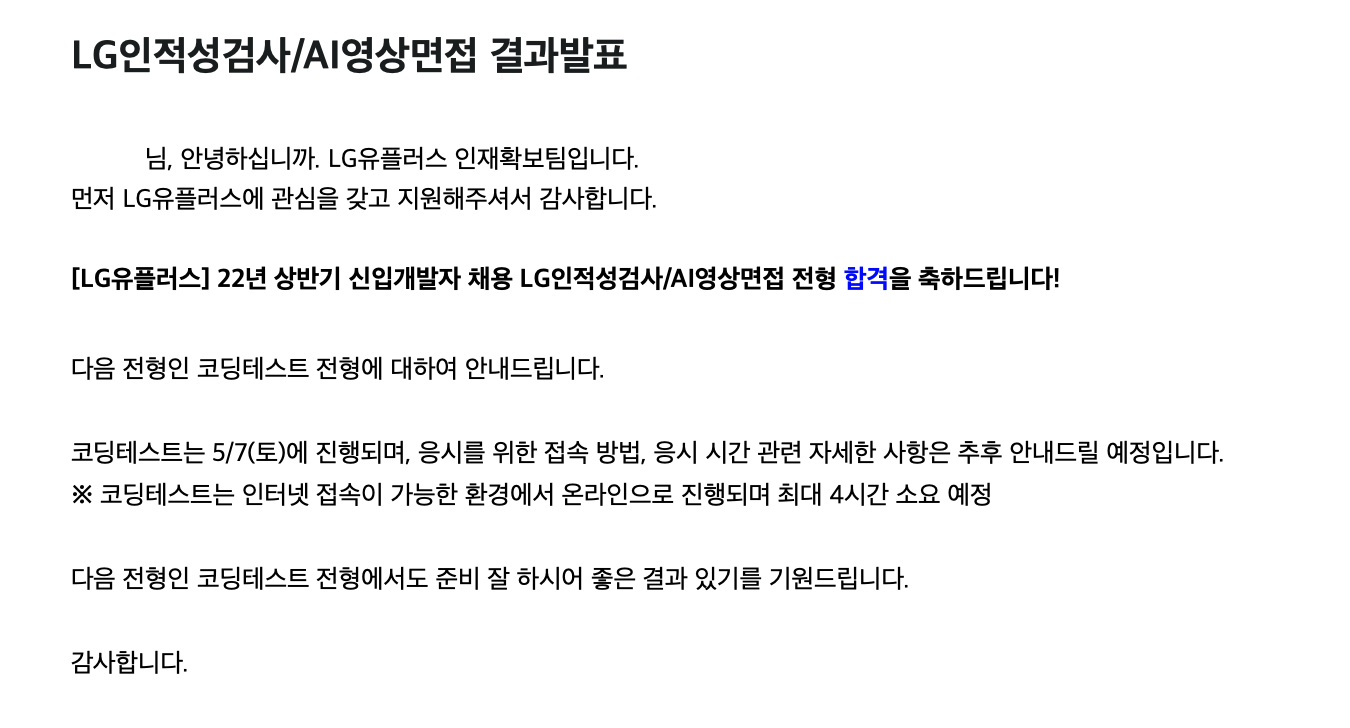 길고 길었던 인적성/ AI 면접 결과가 나왔다!