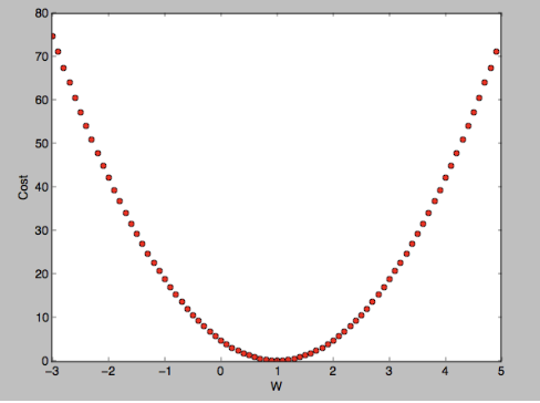 0이므로 W는 1이 최저점이고 목표로 한 값입니다.