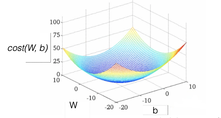 cost의 그래프 모양은 이런 모양이 되는지 확인해야하며 이러한 모양을 convex function이라고합니다.
